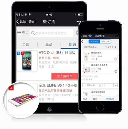 • 經(jīng)銷商門(mén)戶—微信分銷訂貨平臺(tái),企業(yè)經(jīng)銷商通過(guò)關(guān)注企業(yè)微信服務(wù)號(hào),可在微信中下達(dá)ERP系統(tǒng)銷售訂單